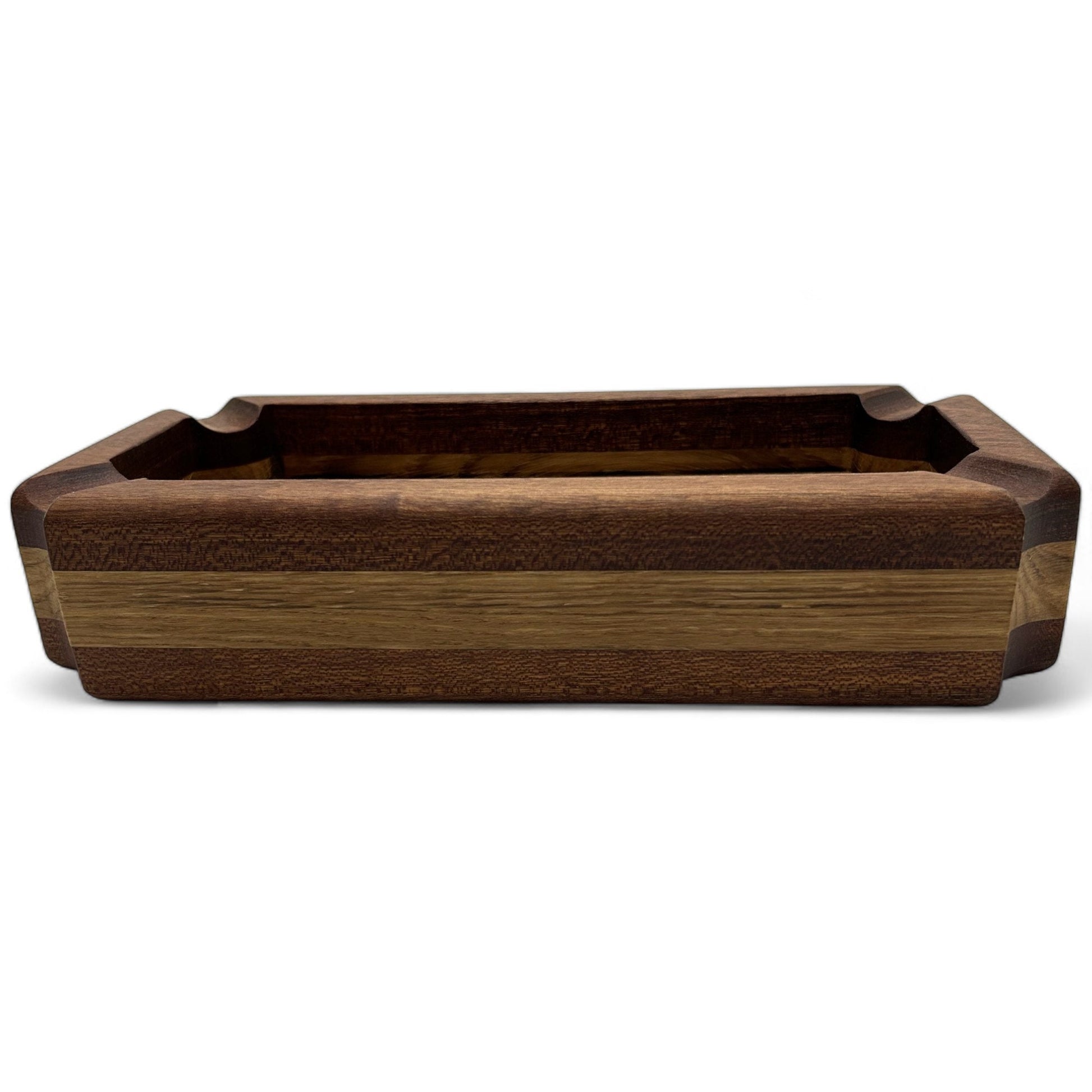 SMOAKS One of One Cigar Ashtray expertly crafted from Smoked French oak and mahogany. Absolutely stunning one of a kind piece, which I am very proud of. Supplied images are of the Actual Ashtray. Why settle for mediocrity when you can bask in the unparalleled beauty of this ? Your ashtray is built to withstand the test of time, ensuring that your investment in luxury endures for generations to come. Made from the finest hardwoods renowned for their strength and heat resistance, Your ashtray provides a safe and secure resting place for your cherished cigars, allowing you to indulge in the ritual of smoking with peace of mind.